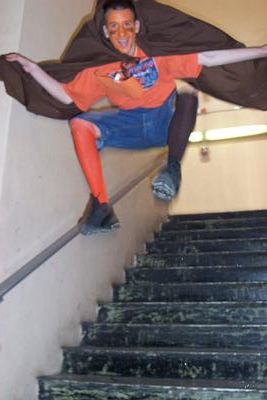 I have been—and still am—a funny and hyperactive kid. A poster for ADHD at a time when treatment was not as common as it is today. It got me into trouble often. My art magnet teacher decided to sit me in the art closet because I was being too distracting (and I was). I often had teachers place me in similar scenarios right next to them. One that was different was my 5th grade gifted teacher @Mr_Connell. He had a short beard, and funny long teeth. Hilarious expressions. And eccentric! He taught us history, logic and geometry puzzles, The Odyssey and classic Greek mythologies, and made plenty of room for us to play and explore.77 I distinctly remember him teaching us the adventures of Odysseus. I also remember these colored plastic shapes that we would have to arrange into patterns. He did a lot with games. He had an Egyptian persona called @Popquizizaca which would come up when we had a quiz. He also allowed for a lot of free play, and filled the room with books and toys to explore. Pictured below is me in the portable eating bubbles. I was very fond of the history books in the back that showed cutouts of ships and castles. I remember them visibly. I also liked to hide in little spaces. For laughs I would fold my body up into shoe cubbies. I often did funny things for laughter. There was also this unconnected sink drawer, which we pretended to be a hideout. @Joel and I would pass little tiny messages to each other through the sink, until @Gonzalo thought it was fun to drop a sharp pencil that almost caught Joel in the eye (he was looking through it at the time). Anyways, a lot of room to play. Mr. Connell was kind to me.